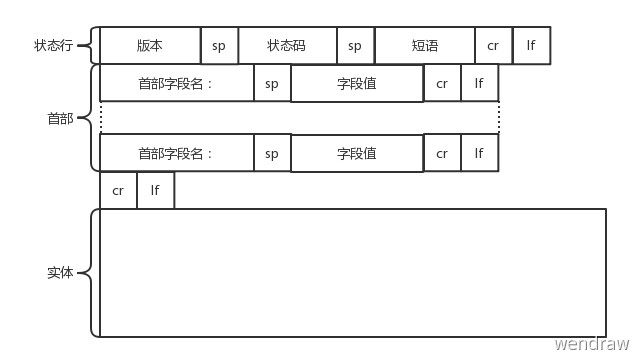 Response 是服务端返回给客户端的数据,对应的也可以分成三部分: